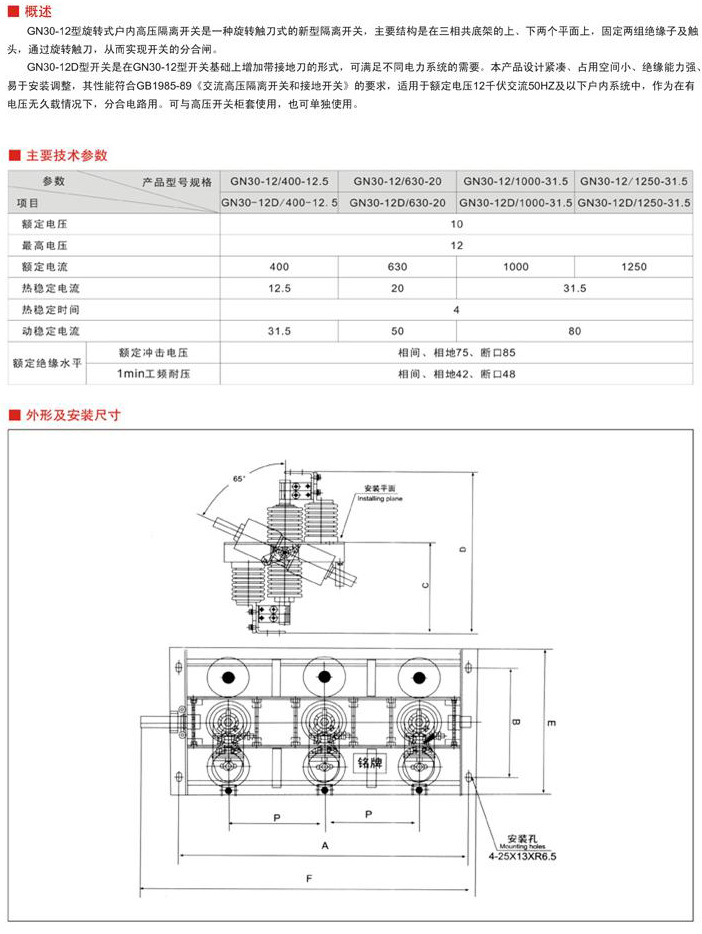 GN30-12系列戶內旋轉式高壓隔離開關